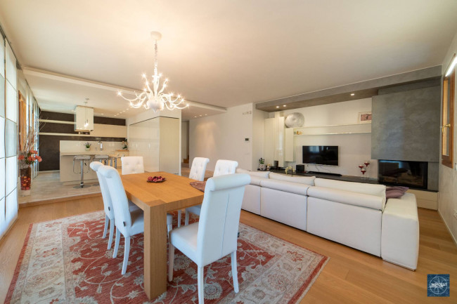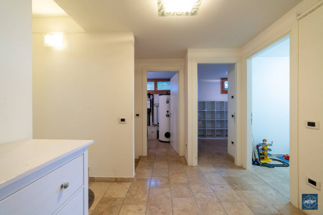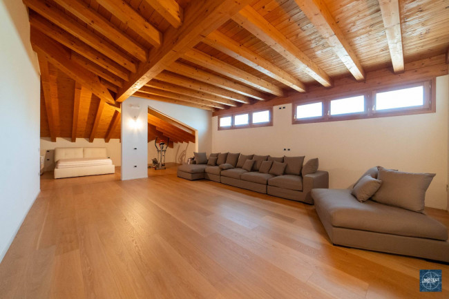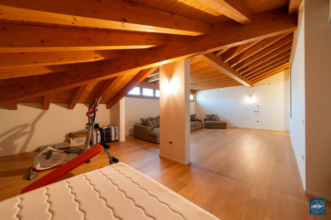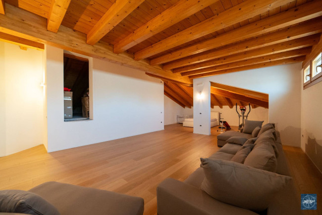 Una delle caratteristiche più affascinanti di questa abitazione è la zona mansardata, un ampio spazio versatile che puoi utilizzare come sala relax, zona hobby/sport, o per accogliere amici e parenti durante i momenti di convivialità. Completano la proprietà un garage doppio con apertura motorizzata, un magazzino, una centrale termica, un ufficio, una stireria e una taverna, offrendo una quantità di spazi perfetta per ogni esigenza.